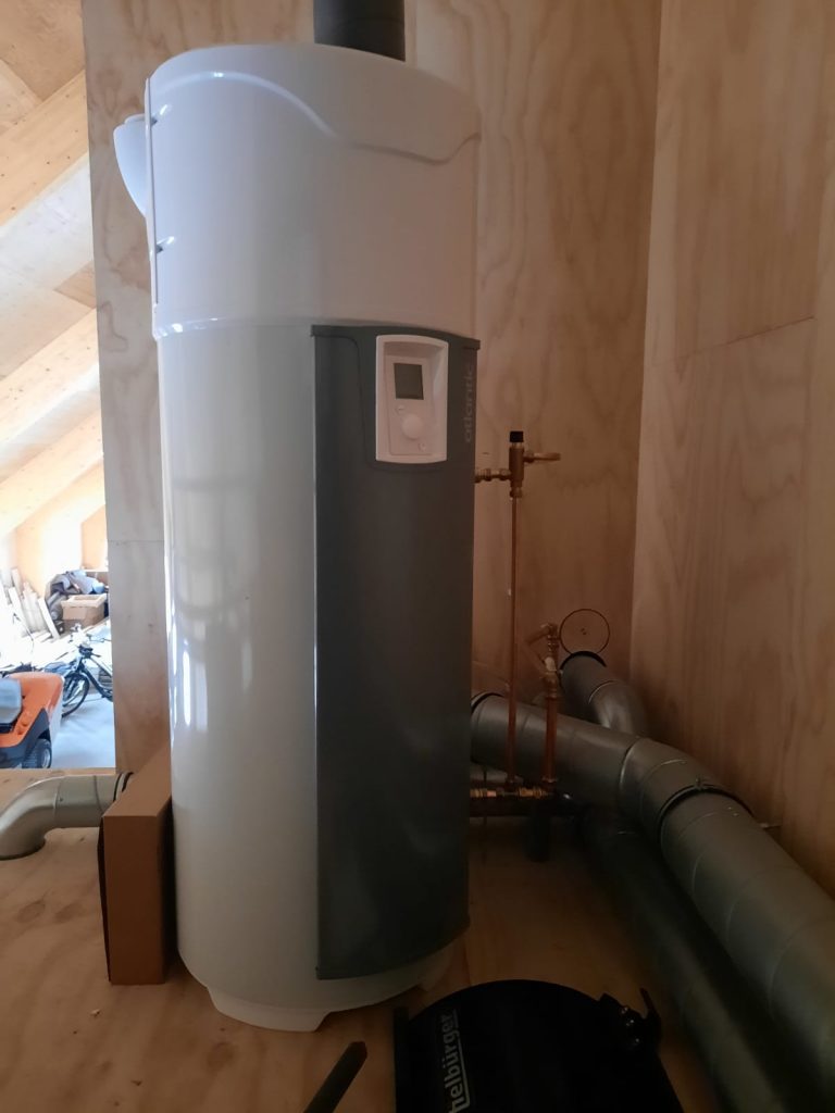 De warmtepompboiler haalt warmte uit de lucht, hiermee wordt water opgewarmd.
